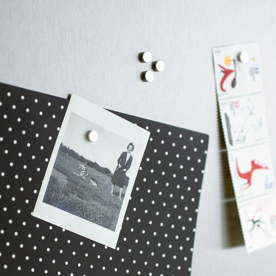These Mighty Magnets give you a simple way to hang up notes. pictures. and other sheets of paper on any magnetic surface. The small. round design of the magnets won't detract attention away from the item you're displaying. and they can be used in any room of the home. Hang up pictures in your locker. schedule reminders on your fridge. and more with these chrome-finished magnets.